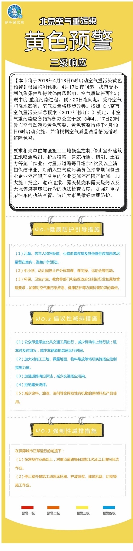 本市将于2018年4月18日0时启动空气重污染黄色预警