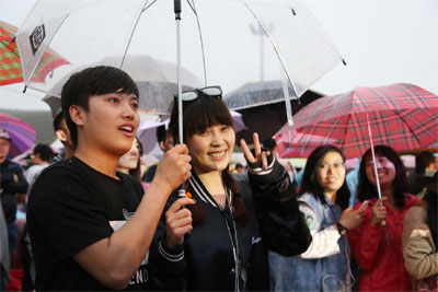 乐迷冒雨观看演出