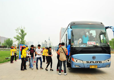 乐迷有序乘坐摆渡车