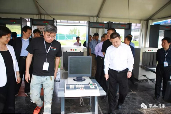 领导们检查安检设施情况