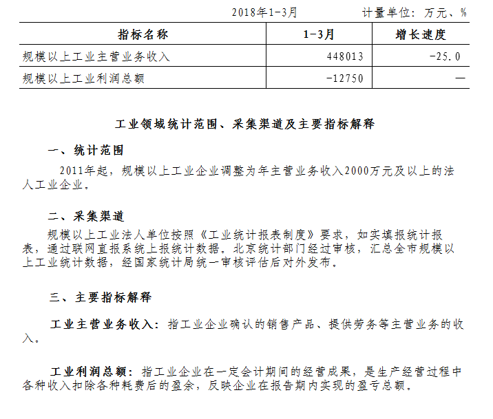 2018年1-3月规模以上工业主营业务收入、利润总额